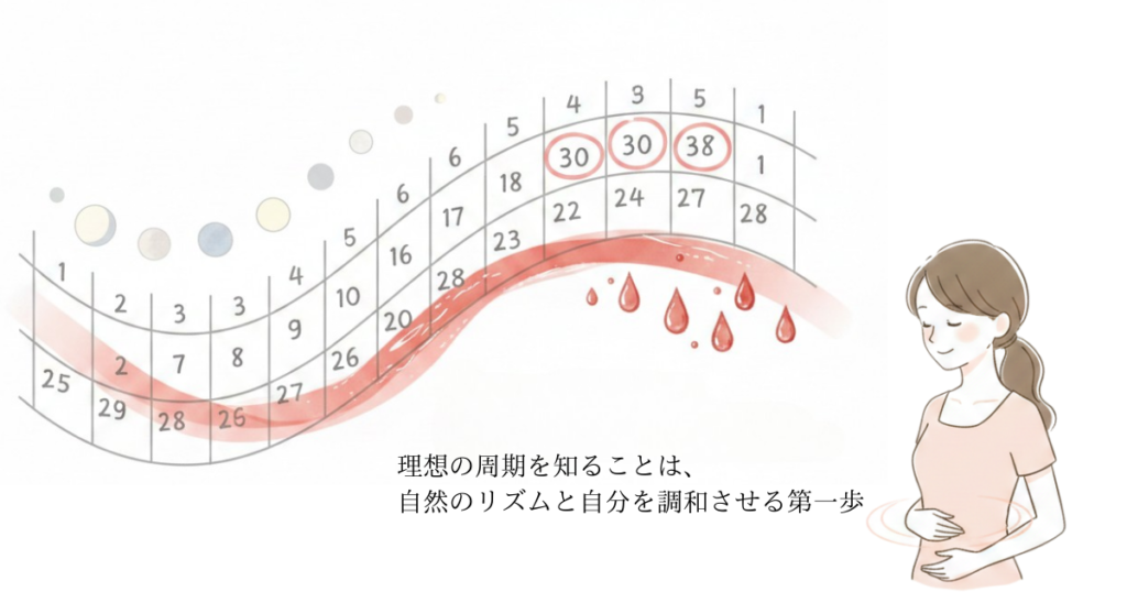 周期: 25日〜38日(多少の前後より、リズムが一定かが重要)