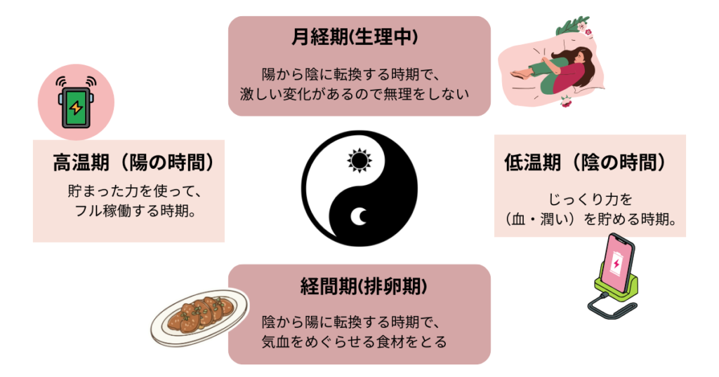 「陰(栄養)」がしっかり溜まってこそ、力強い「陽(温め)」にバトンを渡せます。低温期に夜更かしを控えるのは、翌週の自分に『元気のバトン』を渡すためなんですよ。