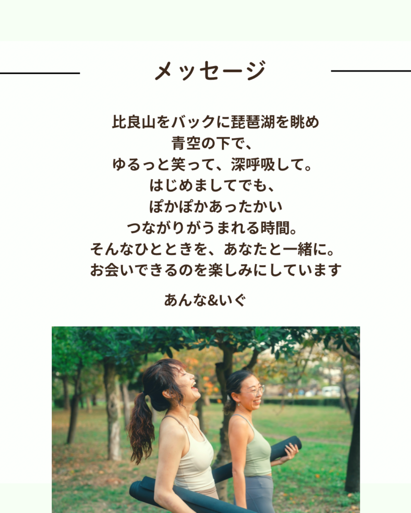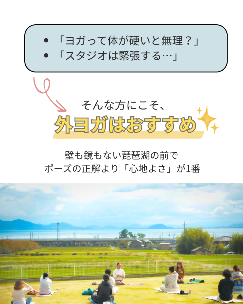 そんな方にこそ、壁も鏡もない琵琶湖での外ヨガは最高のリフレッシュになります。